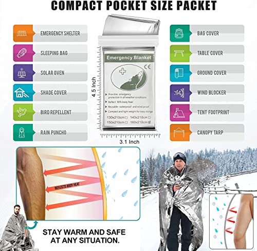 - 6 قطع من بطانيات الطوارئ الفاخرة - بطانيات مايلر المتينة والمتقدمة المصنوعة من الألومنيوم مثالية لحقائب الحشرات المدنية وحقائب السفر ومجموعات الطوارئ المنزلية/السيارات
