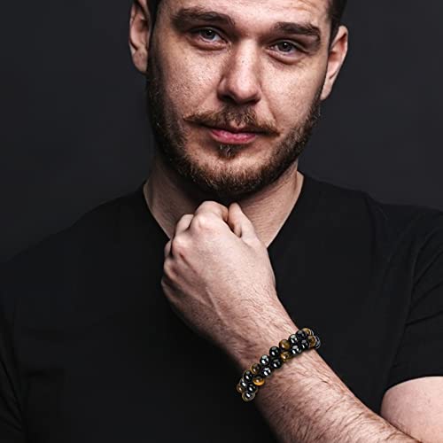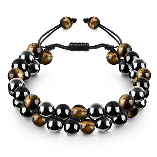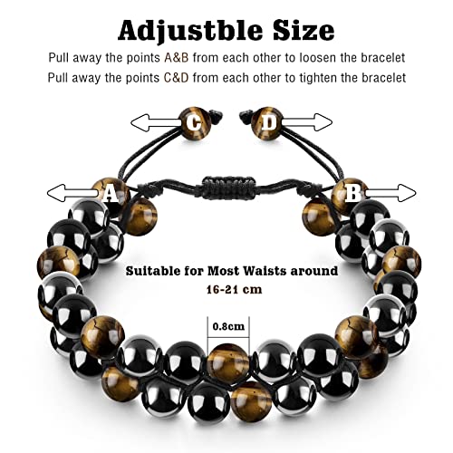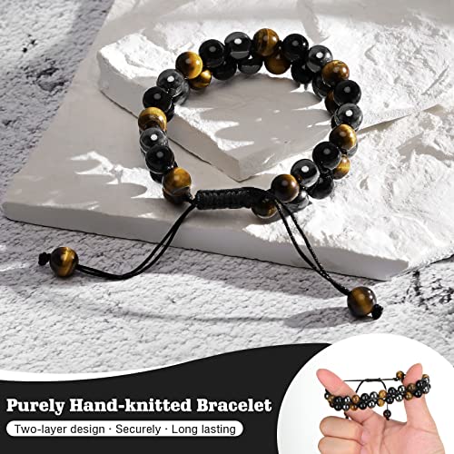 Emibele - سوار حماية ثلاثي، سوار من حجر الجمشت والزجاج البركاني الاسود وحجر الهيماتايت، سوار مصنوع يدويا من الحجر الطبيعي، سوار كريستال علاجي للرجال والنساء يجلب الحظ والازدهار والسعادة