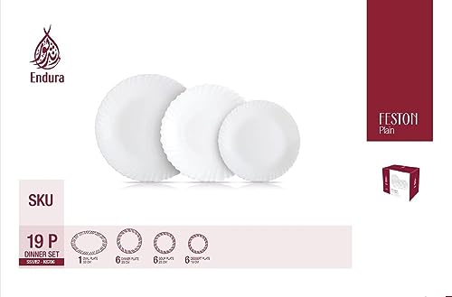 Endura - طقم عشاء من اندورا – ابيض، اركوبال، 19 قطعة - زجاج مُقسى K6206