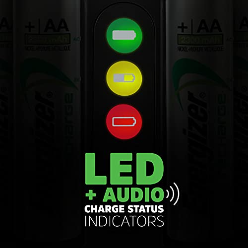 - متوافق مع جميع بطاريات ايه ايه أو ايه ايه ايه من فئة هيدريد النيكل والمعدن NiMH القابلة لإعادة الشحن (يوصى باستخدام بطاريات انرجايزر القابلة لإعادة الشحن)