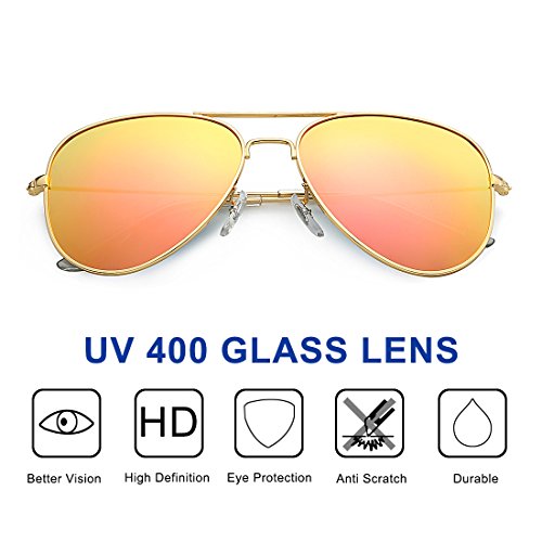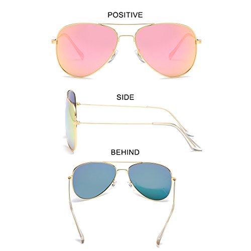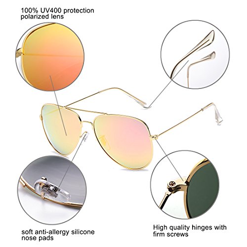 ENSARJOE - نظارات شمس افياتور كلاسيكية مستقطبة للحماية من الاشعة فوق البنفسجية 400 للرجال والنساء انسارجو ذهبي وزهري تغليف بسيط M
