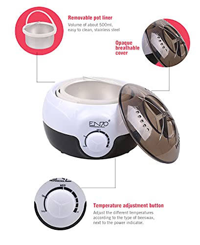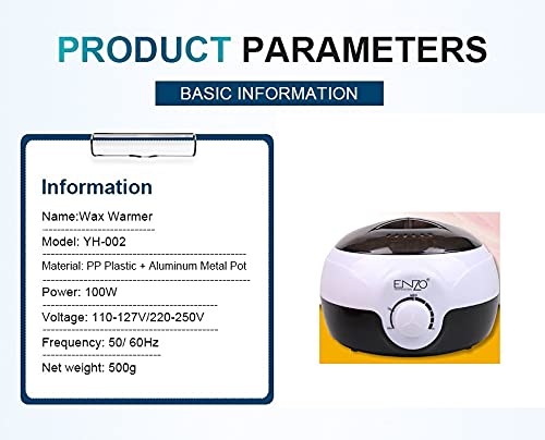 • سلك الكهرباء المتين والمقاوم للحرارة والفيشة يجعلانه خفيف الوزن ومناسب لجميع احتياجات إزالة الشعر بالشمع. يمنع الغطاء الشفاف تلوث الشمع والحرارة الزائدة. منظم حراري مصمم للتحكم التلقائي في درجة الحرارة.