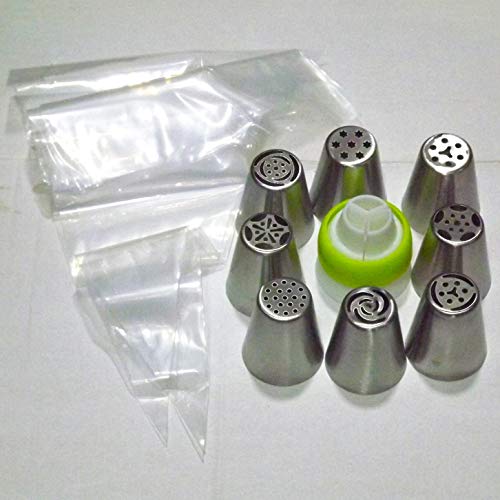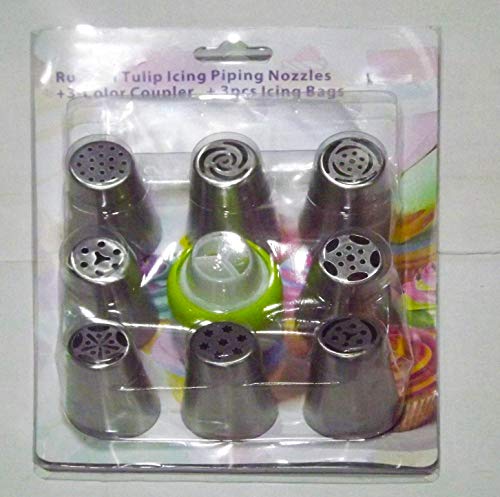 EPO - فوهات اباريق روسية لتزيين الحلويات من الستانلس ستيل مع فلانشات بعدد 3 الوان و3 اكياس، مجموعة من 12 قطعة