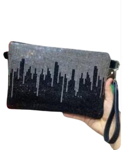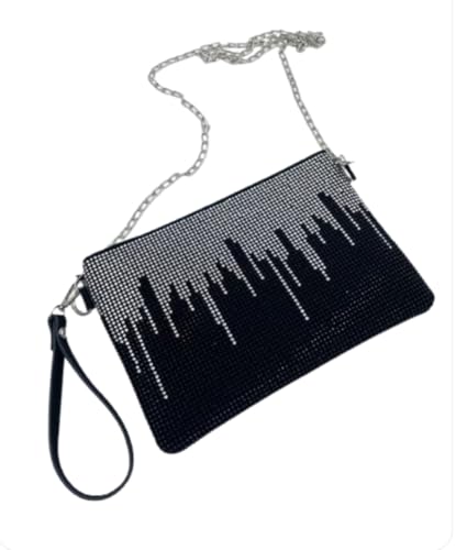 Generic - حقيبة يد صغيرة للسهرات للنساء باللون الأسود حجم مدمج مع مسامير فضية وحزام سلسلة