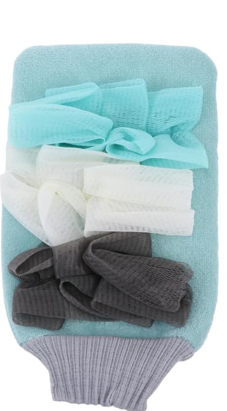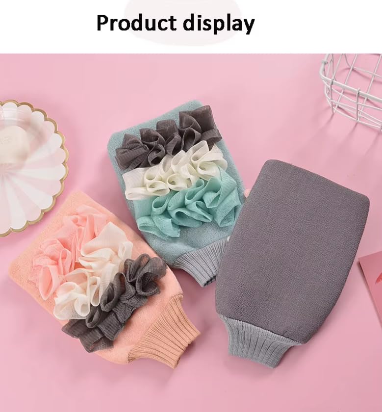 Generic - جوانتي تقشير مع ليفة إسفنجية لتنظيف الجسم، إسفنجة استحمام مزدوجة الجوانب للاستحمام للنساء والرجال، قفازات تقشير الجلد الميت للجسم (قطعة واحدة، متعدد الألوان)