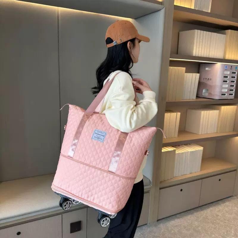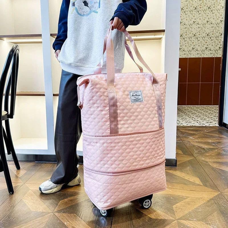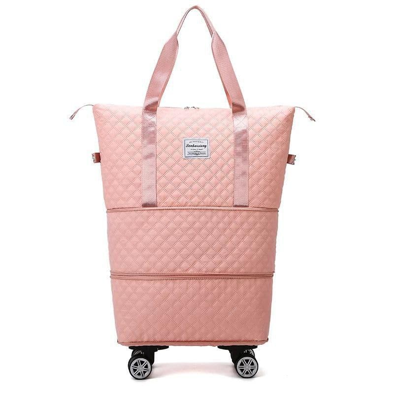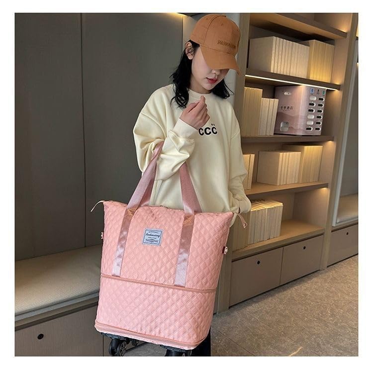 Generic - حقيبة سفر قابلة للتوسيع مع عجلاتررمقاومة للماءرمع سحابات مزدوجة مقاس 42×75 سم (بينك)