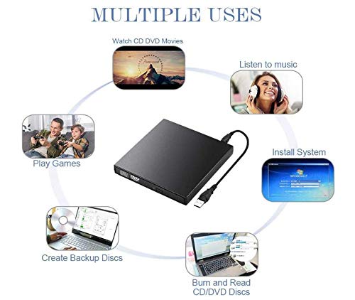 Other - محرك اقراص دي في دي خارجي للكمبيوتر المكتبي والنوت بوك، محرك اقراص ضوئية USB 2.0، مشغل سي دي ار دبليو، قارئ ناسخ محمول ومسجل دي في سي دي ودي 9