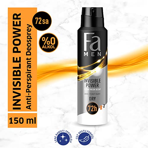 Fa - سبراي مضاد ومزيل العرق انفيزيبل باور للرجال من فا - 150 مل