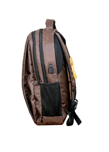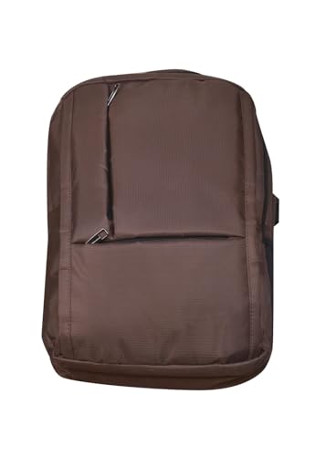 Generic - شنطة ظهر للاب توب من القماش بسوستتين مع جيبين اماميين بسوستة- مع منفذ شحن USB-لون بني
