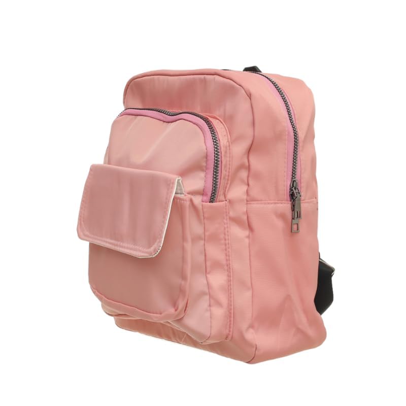 Generic - شنطة ظهر قماشية مقسمة تحتوي على جيبين بسوستة وجيب امامي عميق وشكل بسيط مصمم خصيصًا للطلاب - بينك، متعدد الألوان