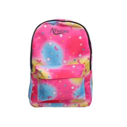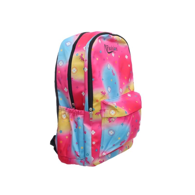 Generic - شنطة ظهر قماشية كبيرة بطبعة ملونة تحتوي على جيب امامي بسوستة وجيوب جانبية عميقة ومصممة خصيصا للطلاب - متعددة الالوان