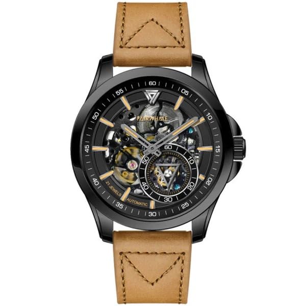 Fairwhale - ساعة جلد للرجال من فيرويل FW-6220-2، مقاس 42.5 ملم، بني/اسود، تناظري