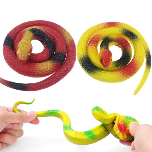 Tokaneit - لعبة ثعبان مزيفة، عبوة من 2 ثعبان بلاستيكية، ثعبان محاكاة مطاطية، ثعابين مزيفة من المطاط، ثعابين مزيفة ملونة، دعائم الحديقة، هدية مزحة