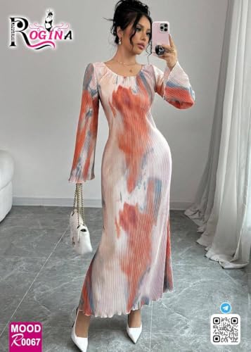 Generic - فستان ماكسي بطبعة تجريدية وأكمام طويلة أنيقة