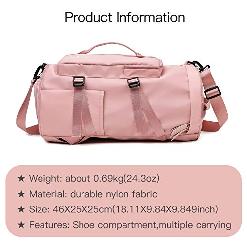 fancyfree - شنطة ظهر للسفر متعددة الاغراض من فانسي فري دفل رياضية كبيرة مع جيوب احذية فردية مناسبة للرجال والنساء 315 زهري نايلون