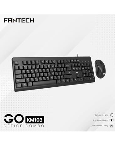 Generic - كيبورد وماوس سلكي USB KM103 من فانتيك، أسود