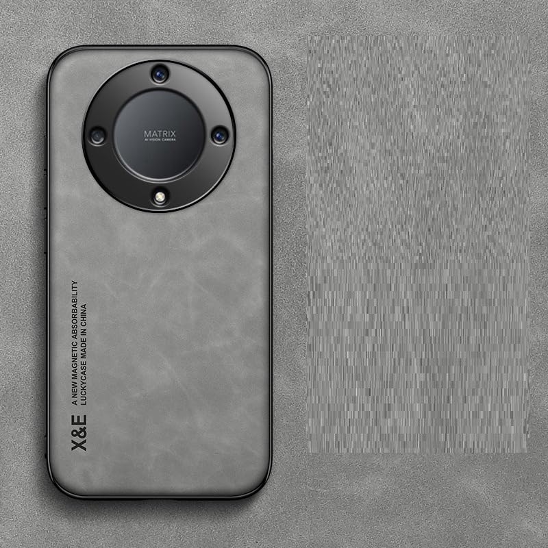 FASCINATION - جراب حماية مغناطيسي ناعم ورفيع مصنوع من الجلد الصناعي متوافق مع موبايل هونر X9a من فاسينيشن (لون رمادي)