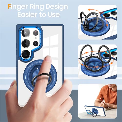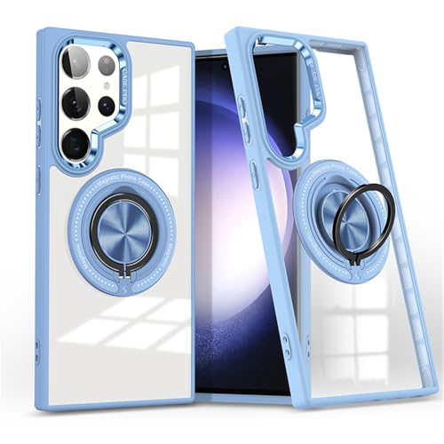 FASCINATION - فاسينيشن جراب حماية مغناطيسي لموبايل سامسونج جالاكسي S24 الترا بتصميم رفيع وحامل حلقي شفاف S24 ازرق سماوي أكريليك