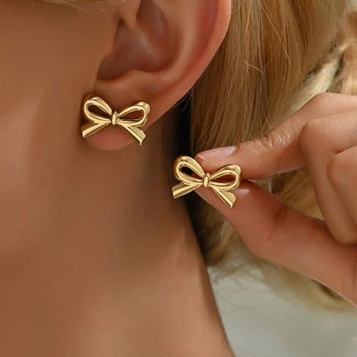 Generic - اقراط عصرية - اقراط ذهبية على شكل فيونكة للنساء، اكسسوارات شريطية صغيرة عصرية بتصميم انيق وانيق، هدية مثالية لاعياد الميلاد او فساتين الحفلات الموسيقية او الاحتفالات الخاصة
