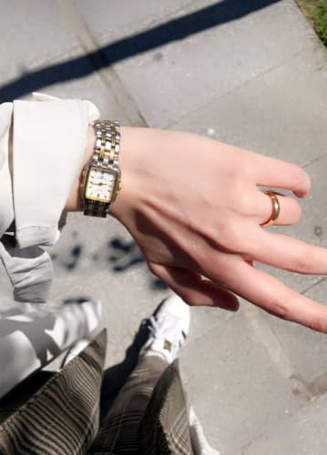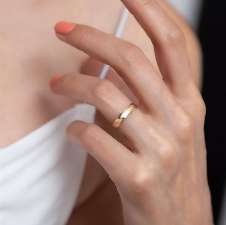 Generic - خاتم عصري فاخر 4 ملم بلون ذهبي للخطوبة والزفاف للأزواج بتصميم بسيط وعصري مجوهرات راقية هدية للذكرى السنوية للنساء