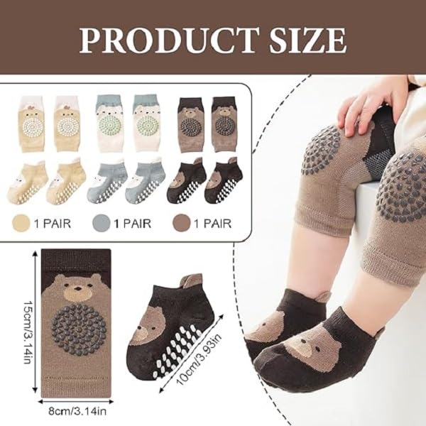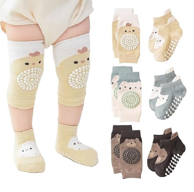 fashion mania - 3 ازواج من وسادات الركبة للزحف للاطفال من فاشون مانيا، جوارب مضادة للانزلاق، مناسبة للاطفال الصغار من عمر 0-12 شهر