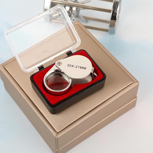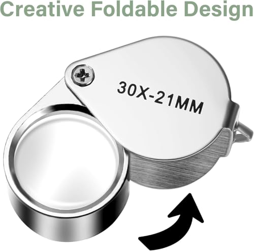 fashion mania - عدسة مكبرة 30X للمجوهرات، عدسة مكبرة صغيرة قابلة للطي للجيب للأحجار الكريمة والمجوهرات والعملات المعدنية والطوابع من فاشون مانيا