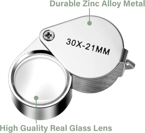 - [مادة عالية الجودة]: تتميز العدسة المكبرة الصغيرة 30X بعدسات زجاج احترافية مغلفة بغلاف معدني عالي الجودة، مما يضمن تكبيرًا واضحًا ودقيقًا. متينة وتدوم طويلًا ومقاومة للكسر.