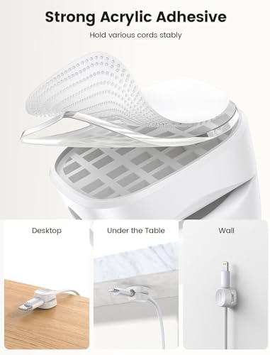 - لاصق أكريليك لا يترك بقايا مترسبة: على عكس الأشرطة اللاصق العادية من نوع 3M، يستخدم منظم الكابلات لاصقًا أكريليكًا أقوى ولا يترك أي بقايا مترسبة عند الإزالة. يمكن تثبيته بسهولة على أي سطح أملس وجاف مثل الطاولات الخشبية أو الزجاج أو البلاط السيراميكي. الحشوات اللاصقة الشفافة لن تتلف مكتبك أو طاولتك الجانبية للسرير أو الجدران.