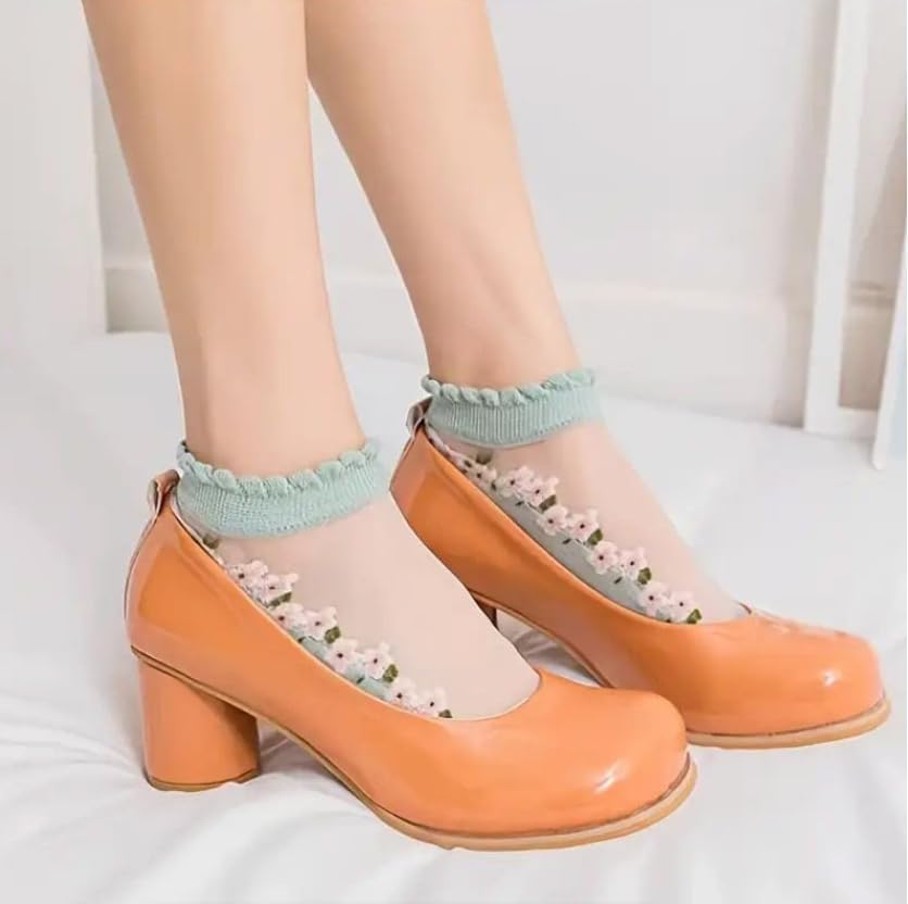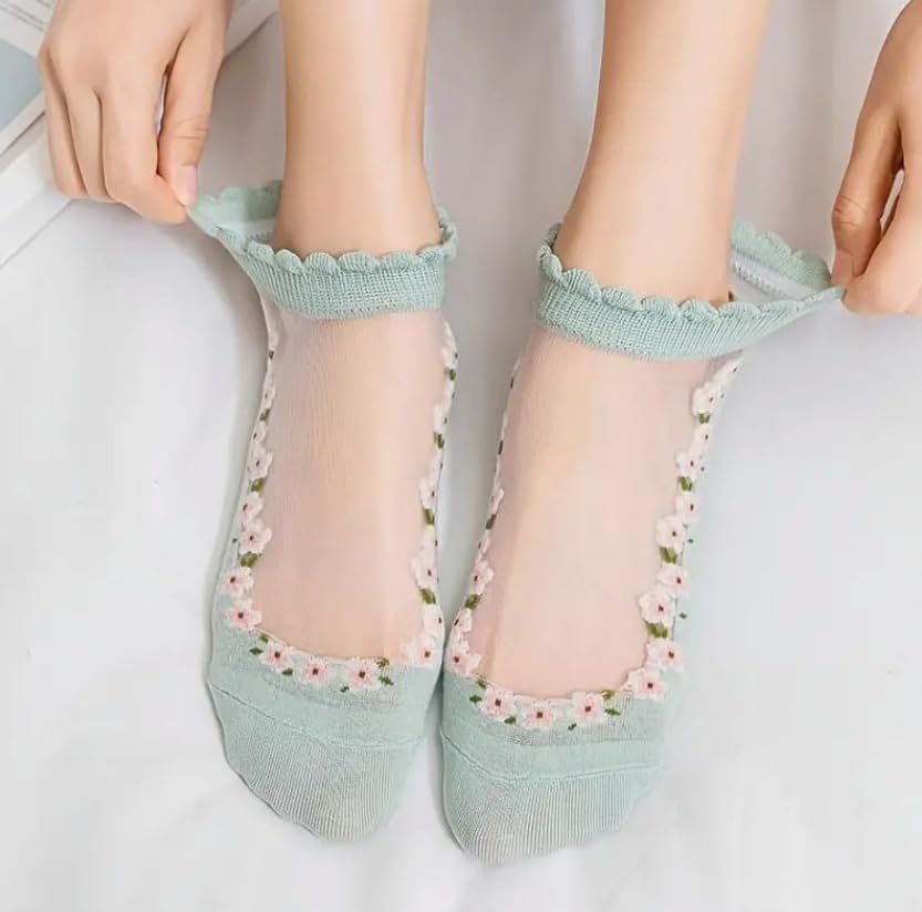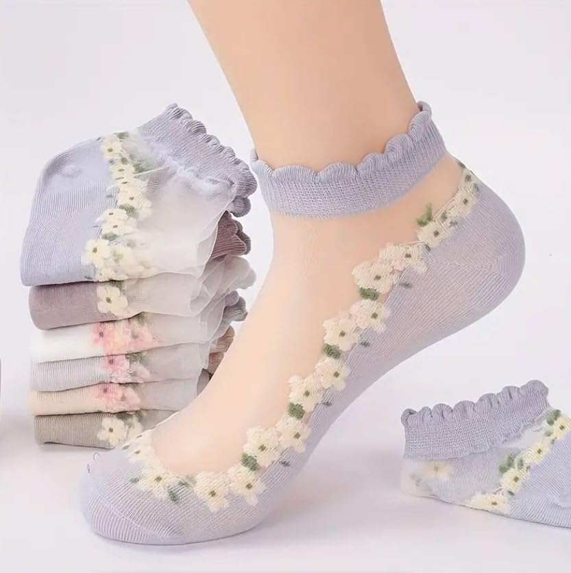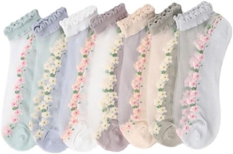 fashion mania - 7 ازواج من الجوارب العصرية للنساء من فاشون مانيا مزينة بالزهور ثلاثية الابعاد بطول الكاحل - مريحة للغاية