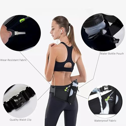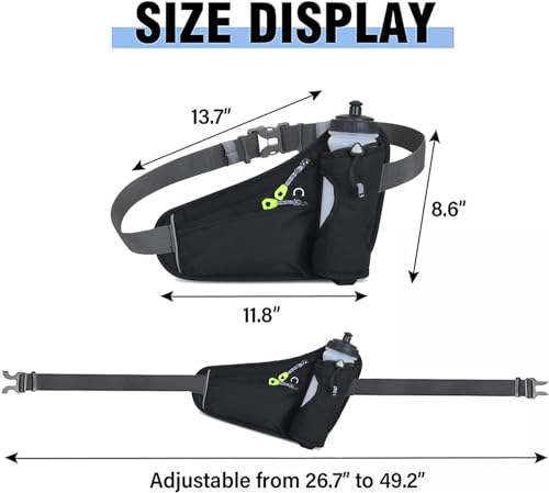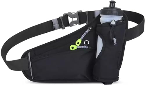 fashion mania - شنطة فاني باك من فاشون مانيا مع حامل زجاجة مياه، حزام جري للترطيب للرجال والنساء، شنطة خصر بحزام قابل للتعديل، مناسبة للمشي والجري والركض والتخييم (الزجاجة غير متضمنة) (اسود)