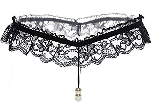 Other - بانتي رفيع دانتيل علي الموضة للنساء برباط لؤلؤ تدليك على شكل حرف T من الخلف أسود قياس واحد