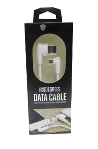 Generic - كابل شحن وداتا عريض للموبايل موديل فاست تشارج 90 درجة مايكرو لجميع انواع الموبايلات والباور بنك بقوة 2.1 امبير بطول 1 متر - USB الى وصلة ابيض لهاتف خلوي