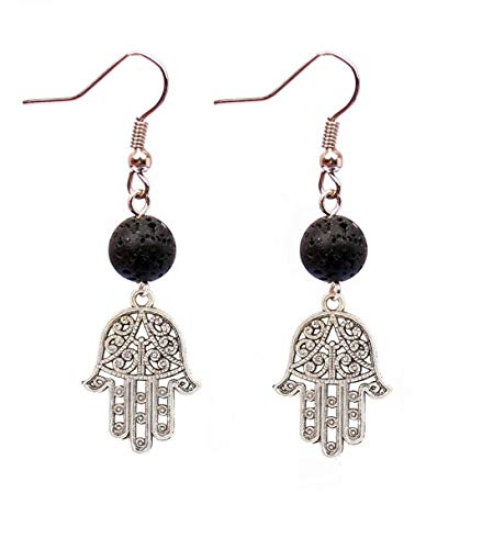 Other - اقراط كف فاطمة مع الحجر البركتني الاسود، معدن، متعدد الألوان، للنساء