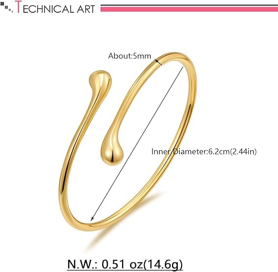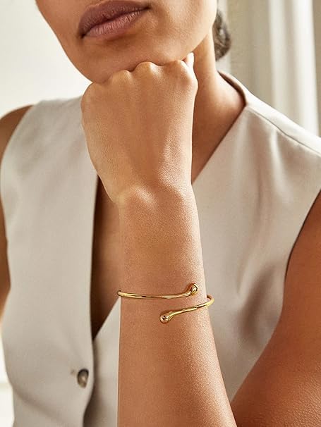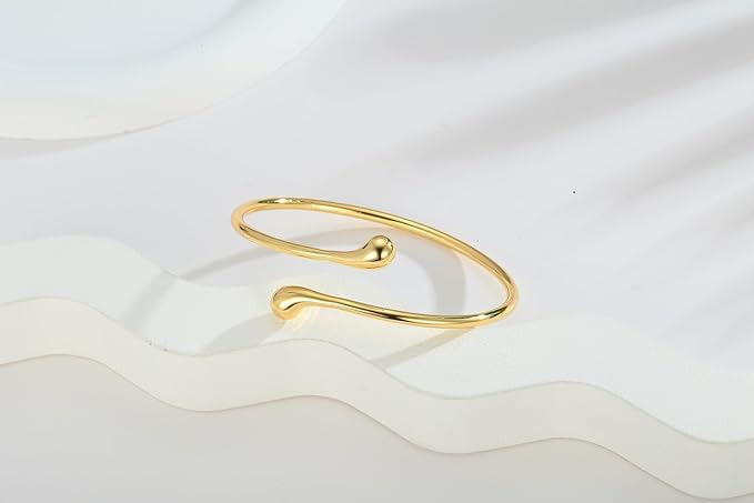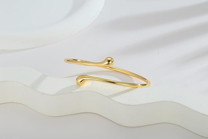 Fayrouz Jewellery - سوار عريض انيق على شكل دمعة للنساء ستنالس مطلي بالذهب عيار 18 قيراط، اساور عريضة مفتوحة قابلة للتعديل، اساور معصم ذهبية بسيطة من فيروز جوليري