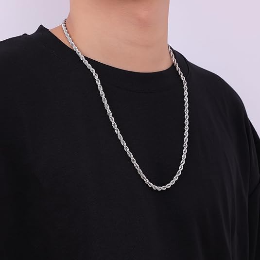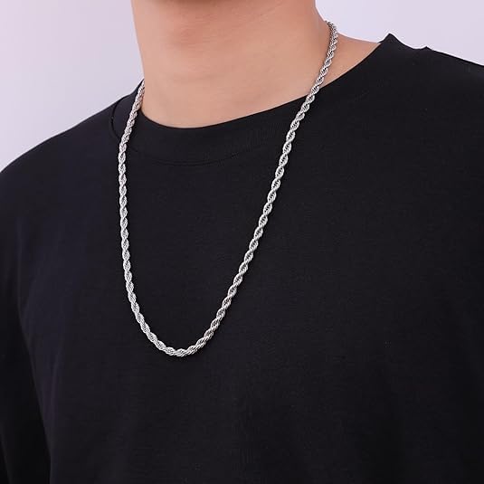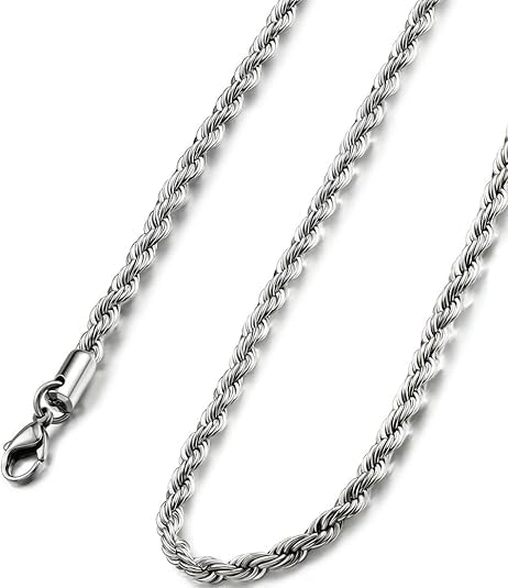 Fayrouz Jewellery - سلسلة حبل يمكن اختيار الحجم للجنسين، سلسلة فضية اللون، سلسلة من الستانلس ستيل للرجال والنساء من فيروز جوليري .