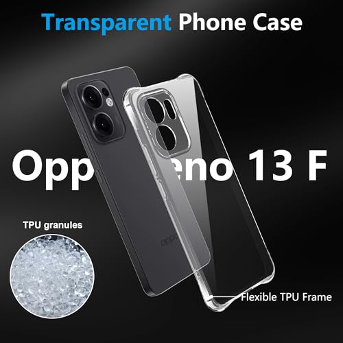 FDHYFGDY - جراب حماية شفاف من السيليكون المقاوم للصدمات من البولي يوريثين المقاوم للحرارة لموبايل أوبو رينو 13 F شبكة الجيل الخامس 5G وشبكة الجيل الرابع 4G مع شاشة حماية واحدة من FDHYFGDY