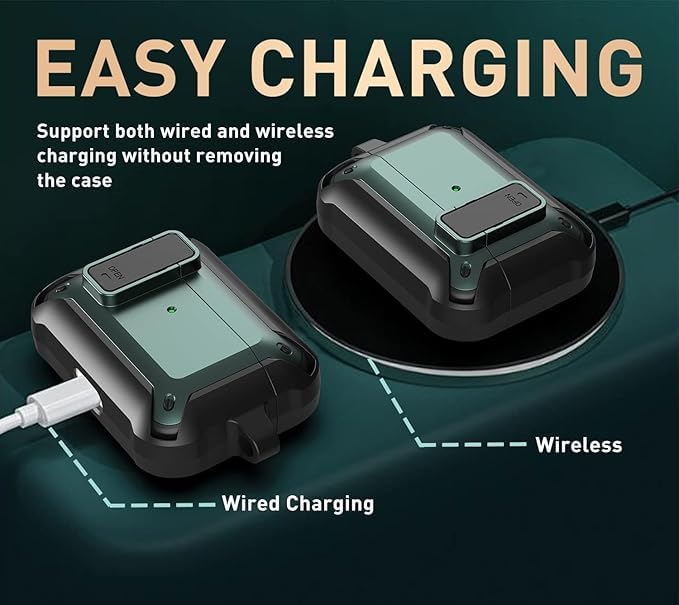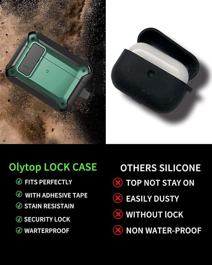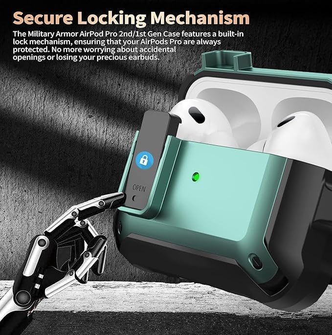 - 【تصميم قفل آمن مطور】 يمكن لوظيفة القفل تثبيت الغطاء العلوي للهيكل بإحكام، ويمكنك بسهولة فتح الغطاء العلوي بنقرة واحدة. تم تجهيز حافظة ايربودز برو 2/1 أيضًا بحلقة تثبيت محمولة، والتي يمكن تعليقها بسهولة على حقيبة الظهر والمفاتيح وحلقات الحزام عند الخروج أو السفر.