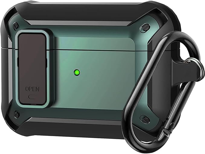 فكرة - غطاء حماية من فكرا لسماعات ايربودز برو الجيل 2/1 مع قفل 2023/2022/2019 جراب متين مضاد للصدمات سلسلة مفاتيح للنساء والرجال اخضر البولي يوريثين الحراري