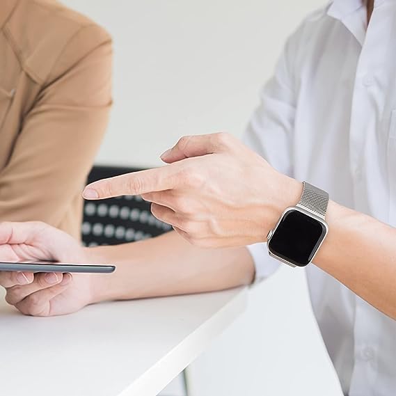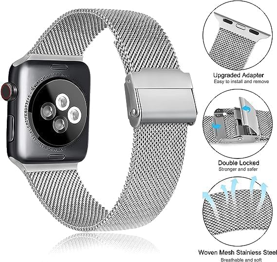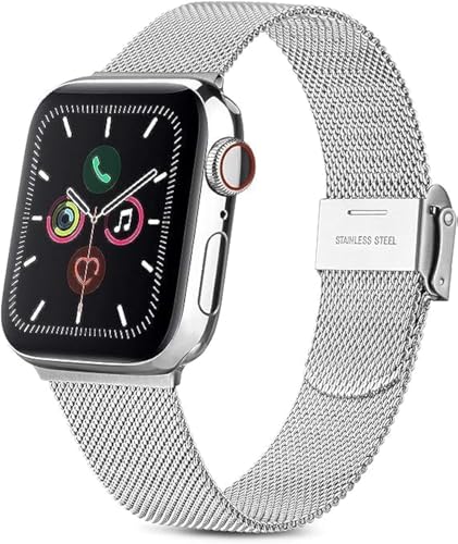 فكرة - سوار شبكة من فيكرا متوافق مع ساعة آبل ووتش ألترا 2 و سلسلة 9 و 8 و 7 و 6 و SE مصنوع من الستانلس ستيل مغناطيسي للجنسين مقاس 49 و 44 و 45 ملم