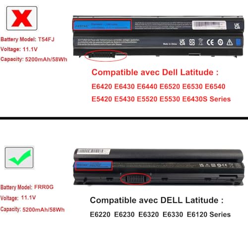 FESTAS - بطارية لاب توب بسعة 5200 مللي امبير في الساعة متوافقة مع ديل لاتيتيودE6220 وE6230 وE6320 وE6330، وموديلات أخرى مثل K4CP5 وFRR0G وJ79X4 من فيستاس
