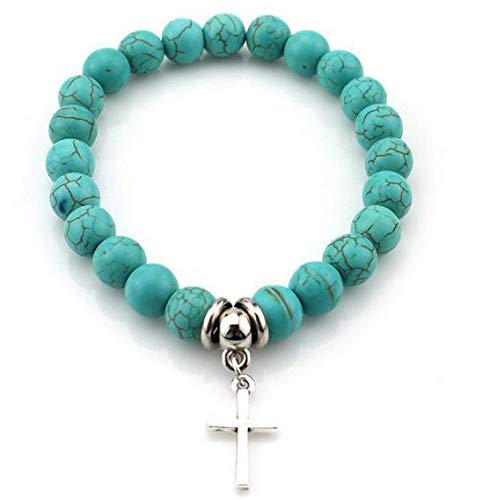 Other - سوار فيروزي مع دلاية صليب صغير - مقاس 18، للجنسين