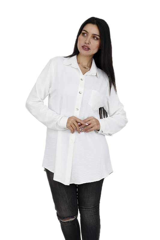 Generic - للنساء بلوزة سادة بجيب للبنات من فيرست موود 0019