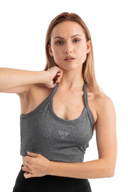 Fit Freak - حمالة صدر رياضية للنساء من فيت فريك بلون رمادي داكن مرقش مقطوع بالليزر (عبوة من قطعة واحدة)
