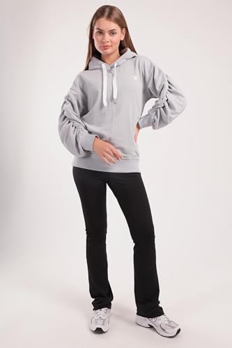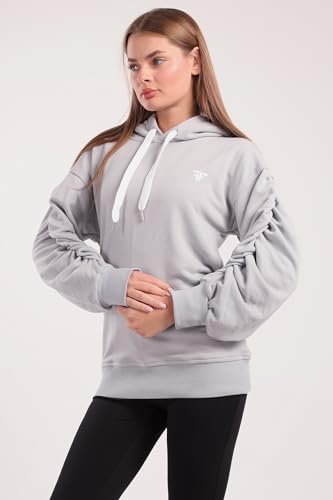 Fit Freak - سويت شيرت بغطاء للراس واكمام مكشكشة للنساء من فيت فريك، لون رمادي فاتح (عبوة من قطعة واحدة)