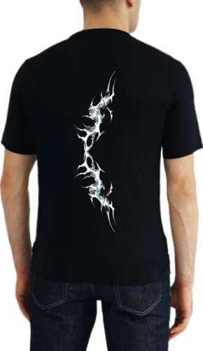 Generic - تي شيرت بطبعة Flame Flow من الخلف بلون اسود