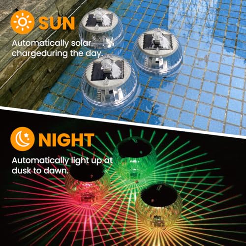 - [توهج متعدد الألوان] أضف توهجًا زخرفيًا ساحرًا إلى حديقتك وحمام السباحة مع هذا الضوء الكروي المتغير اللون، مما يخلق جوًا احتفاليًا واحتفاليًا.