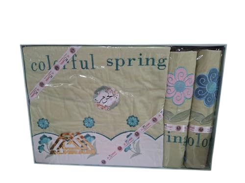 • محتويات طقم السرير: طقم شراشف كامل مزين بالزهور مثل ملاءة مسطحة وغطاء لحاف وأغطية وسائد متطابقة لمظهر متناسق لغرفة النوم
