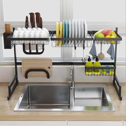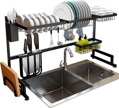 - 【مساحة تخزين كبيرة】 - استخدم رف الأطباق على الحوض أو المنضدة لأخذ أدوات المائدة واللوازم بسهولة، مما يوفر الكثير من المساحة والوقت. مريحة للغاية للتحريك والتعديل. يوفر مساحة أكبر وسهل الاستخدام.