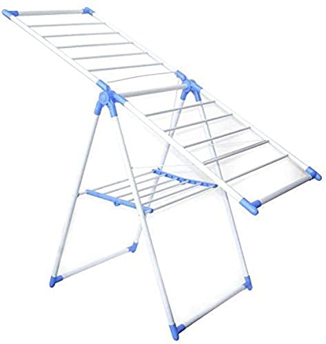 Other - رف تجفيف للملابس مصنوع من خامات مختلطة، باللون الأبيض والأزرق، مخصص للملابس، قابل للطي