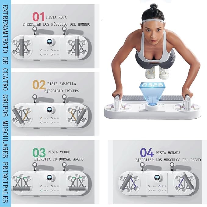 generic - لوح تمارين ضغط، معدات تمارين منزلية محمولة متعددة الوظائف، قضيب رفع ونظام لوح خشبي وأشرطة مقاومة وعداد وقت إلكتروني، مجموعة تدريب القوة المنزلية للرجال والنساء من فولديكسا (متعددة الألوان)